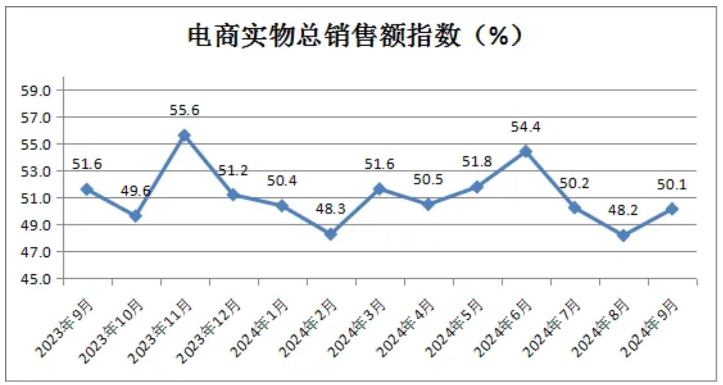 电商实物总销售额指数为50.1%,较上月上升1.9个百分点,重回扩张区间。分析认为,9月开学季消费需求和以旧换新政策进一步落地实施是电商实物总销售额指数回升的重要原因。“金九银十”的节假日商品消费特点与线下趋同。