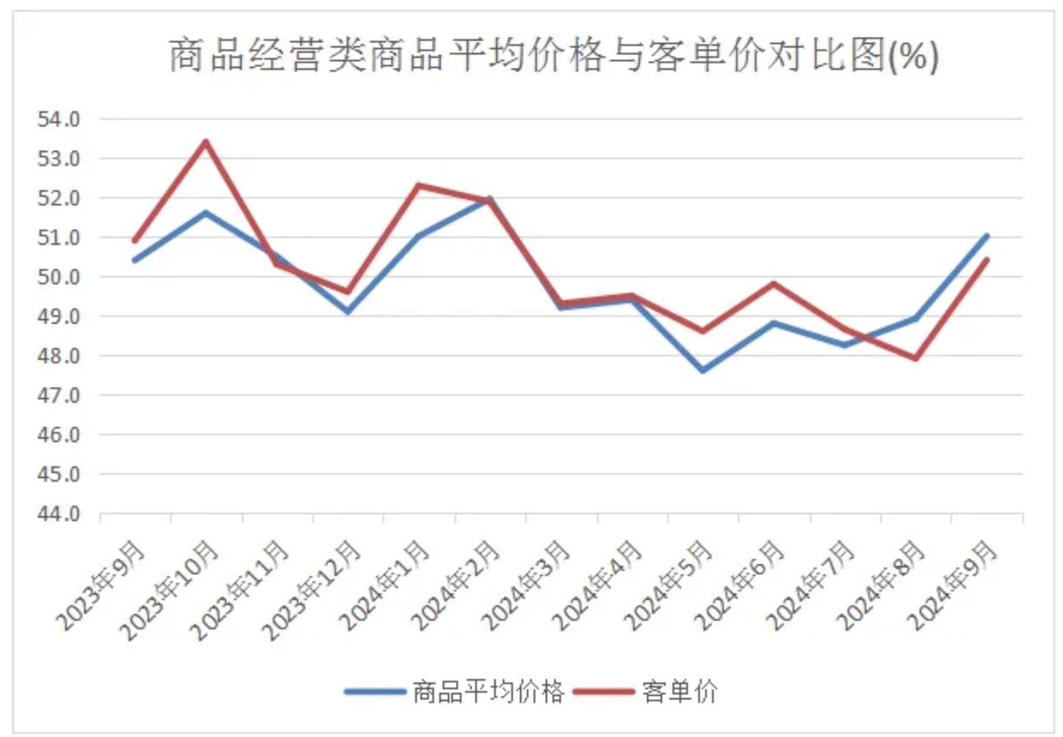 (二)数据显示,9月份商品经营类商品平均价格指数和客单价指数同步上升。