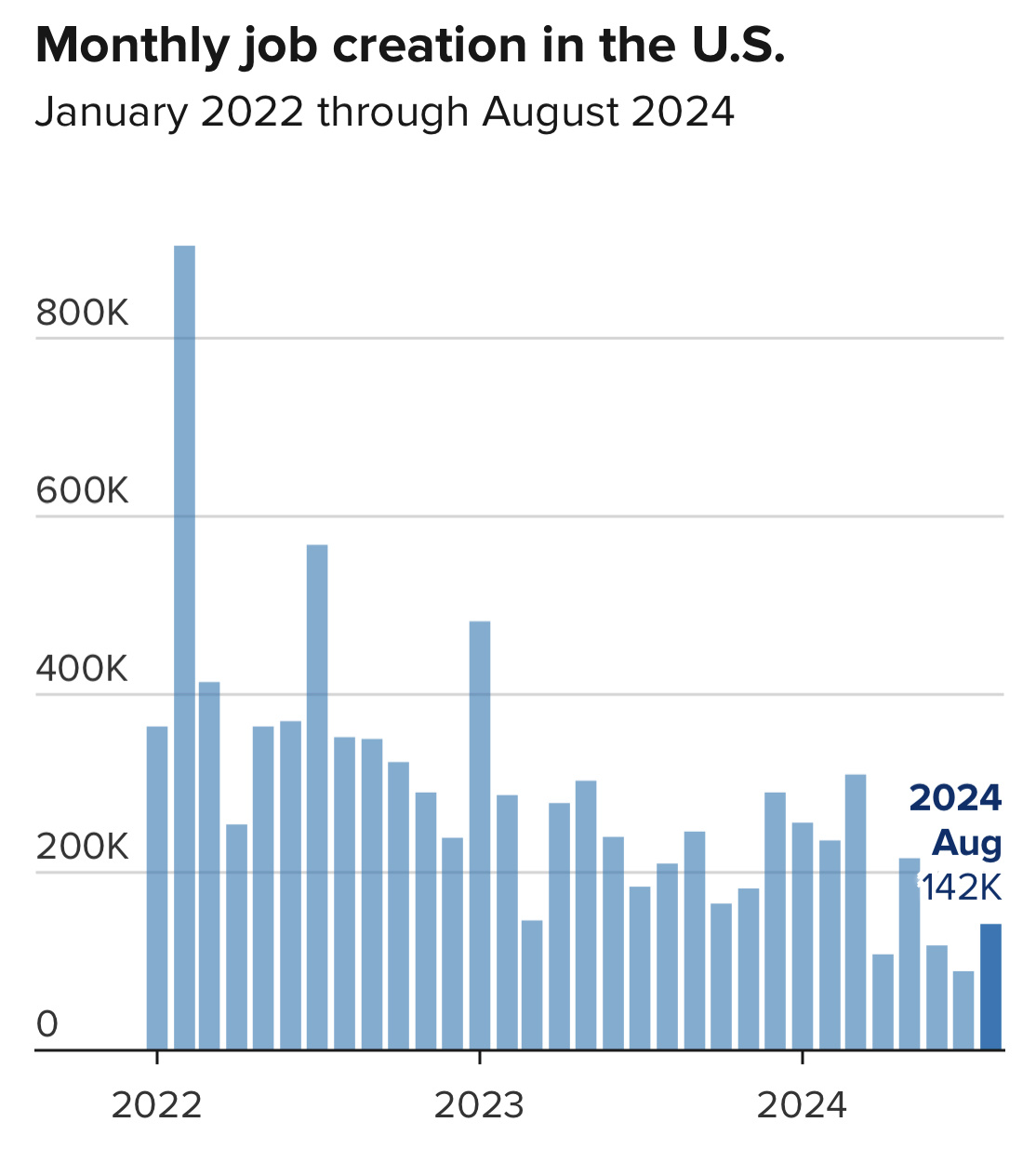 该报告出炉之际,市场对美联储的下一步行动感到不安。自2023年7月以来,美联储在实施了一系列大幅加息以降低通胀后,一直维持利率不变。在数据公布之前,市场一直认为美联储将在9月17日至18日的会议上可能开始降息,唯一的问题是降息规模。