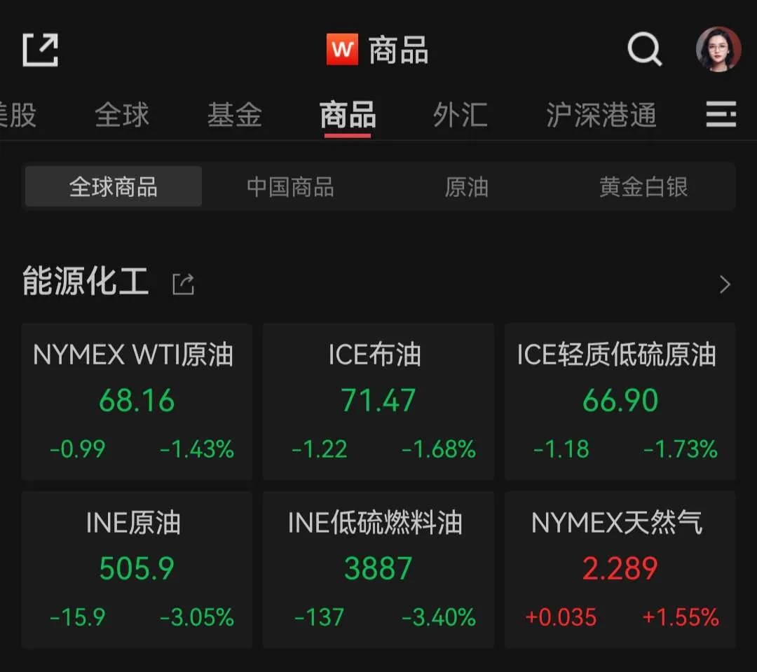 能源股普遍下跌,埃克森美孚跌0.42%,雪佛龙跌1.7%,康菲石油跌1.3%,斯伦贝谢跌1.44%,西方石油跌3.19%。