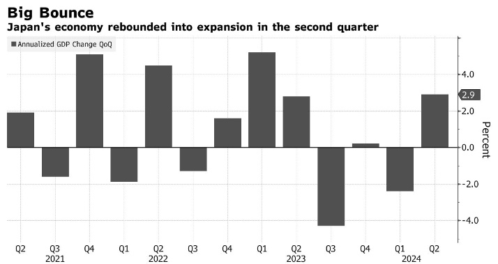 彭博经济学家Taro Kimura表示:“即使下调了GDP,日本经济增长仍远高于潜在水平,日本央行估计的潜在增长率为0.6%。随着通胀升温和薪资强劲增长,我们维持我们的基准预测,即日本央行将在10月份的会议上再次加息。”