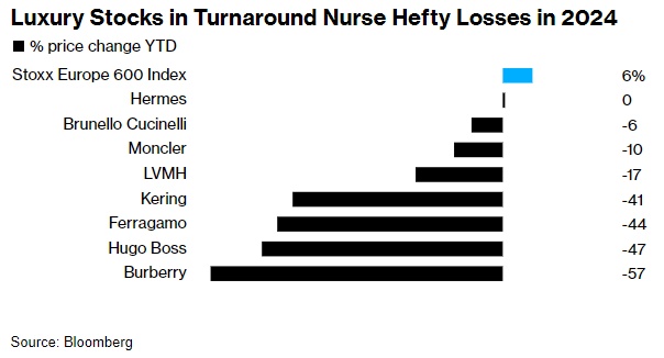 2024年奢侈品股跌幅惨重