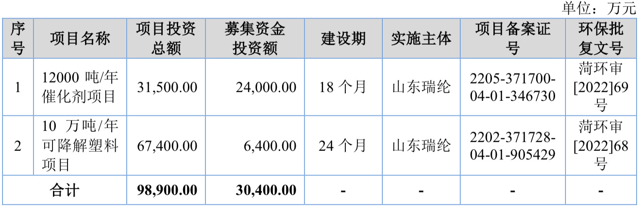 瑞华技术持续钻研精细化工技术及相关产品开发,拟布局高附加值的环保型新材料 市场,计划将已掌握的可降解塑料PBS、PBAT和高端PS材料等成套技术。据了解,瑞华技术募集资金扣除发行费用后拟用于以下列项目: