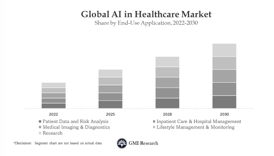 GMI Research最新研究报告显示,2022年融合AI技术的医疗保健市场价值仅仅约为104亿美元,预计2030年有望达到1899亿美元,在此期间的年复合增速(CAGR)高达43.7%。GMI Research表示,在分析极其复发的医疗数据时,AI往往能够以更短的时间和更低的成本执行任务,从而大幅优化患者、医生和医院管理人员之间的联系;并且该机构预计AI有望全面应用于医学成像与快速诊断、药物发现、医疗手术辅助机器人、基因级别的精准医疗、药物模拟筛选以及蛋白质结构预测等领域,大幅缩减产品创新周期、全面提高现代医学的精准率以及在同样的时间内覆盖更大范围的患者。