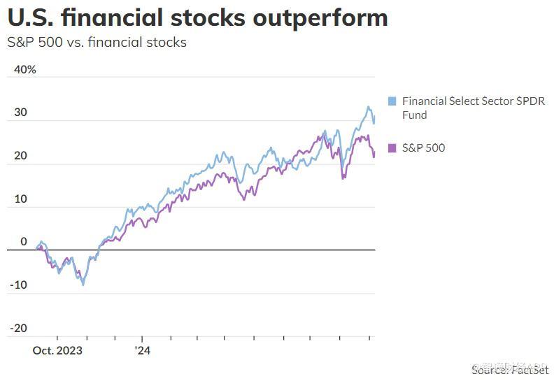 根据FactSet的数据,追踪标普500金融股的金融精选行业SPDR基金(XLF.US)在截至周一的过去12个月里上涨了31.1%,而同期标普500指数上涨了22.7%。
