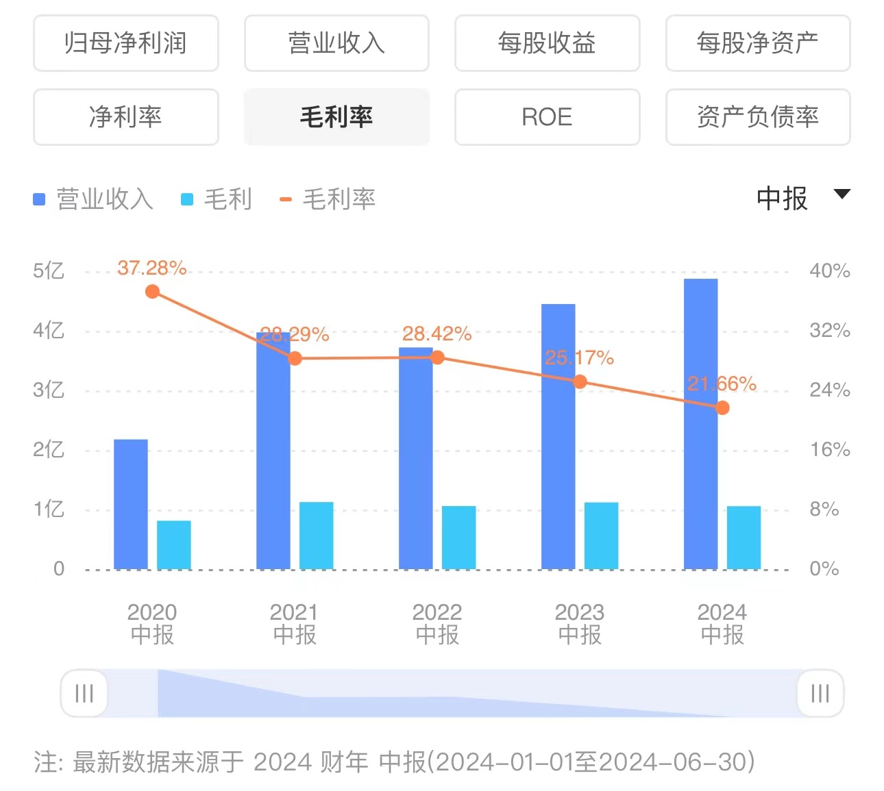 财报显示,2024年上半年,公司收入为4.87亿元(单位:人民币,下同),同比增长9.5%;公司拥有人应占利润4281.1万元,同比下降15.8%。
