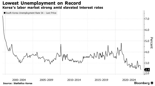 创纪录的低失业率仍为韩国央行提供了另一个证据,使其在必要时进一步推迟降息决定。韩国央行在年底前将举行两次利率决策会议,上个月央行行长李昌镛拒绝透露是否会在 10 月或 11 月降息。