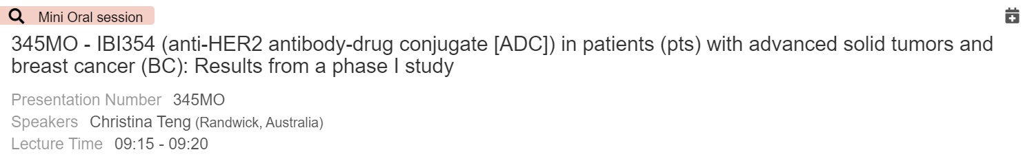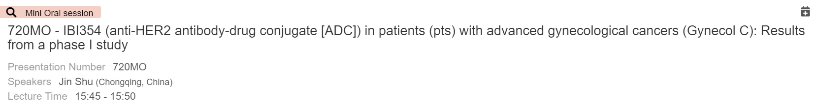 智通财经APP获悉,2024年欧洲肿瘤内科学会(ESMO)年会将于当地时间9月13日~17日在西班牙巴塞罗那召开。日前,ESMO大会官网刚刚公开了入选迷你口头报告(Mini Oral)的摘要,信达生物(01801)靶向HER2的抗体偶联药物(ADC)IBI354有两项1期研究入选,这两项研究分别评估了IBI354在晚期实体瘤、乳腺癌以及晚期妇科癌症患者中的安全性和有效性。报告显示,IBI354治疗晚期实体瘤和乳腺癌,DCR可达93.3%,治疗晚期妇科肿瘤,DCR则达92.9%。IBI354在晚期妇科癌症患者中耐受性良好,并显示出良好的疗效。