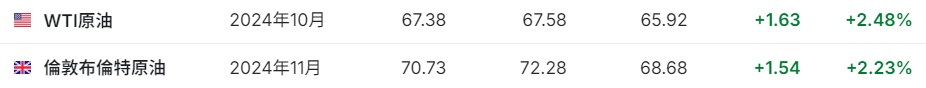3. 截至发稿,WTI原油涨2.48%,报67.38美元/桶。布伦特原油涨2.23%,报70.73美元/桶。