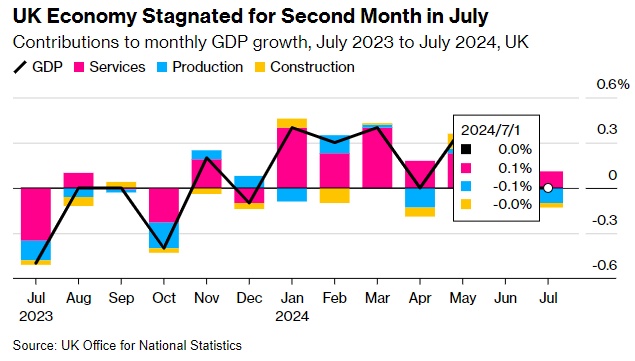 英国经济 7 月份连续第二个月陷入停滞,这意味着经济从衰退中快速复苏的势头正在减弱,这对首相基尔·斯塔默来说是一个打击。