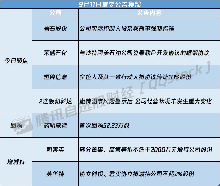 1、岩石股份:公司实际控制人被采取刑事强制措施