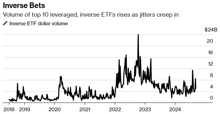 在9.5万亿美元规模的ETF市场中,悲观迹象越来越多,可能会暴露出周三由逢低买入的美股上涨面临着威胁。交易活动显示,市场对一些ETF的需求不断增长,这些基金从大型科技股、小型公司和半导体股的下跌中获利。