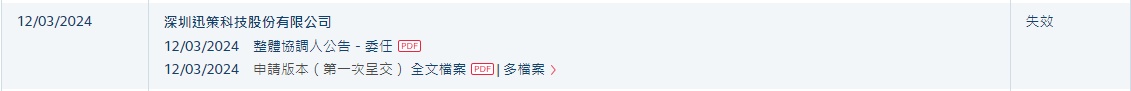 智通财经APP获悉,深圳迅策科技股份有限公司于2024年3月12日所递交的港股招股书满6个月,于9月12日失效,递表时招中金公司为其独家保荐人。