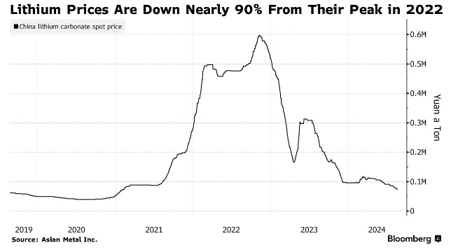 自 2022 年底以来,锂现货价格已暴跌近 90%,导致全球矿山关闭、项目推迟,但宁德时代在江西省的停产是迄今为止最引人注目的事件之一。