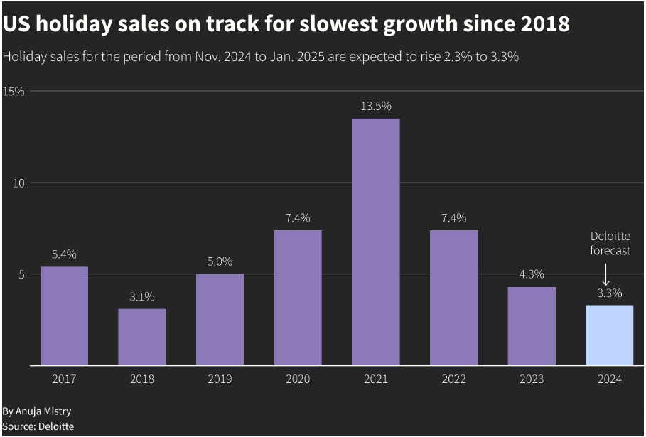 据了解,假日季销售额通常占美国零售商年收入的一半以上,这令市场非常关注这一时期的表现。