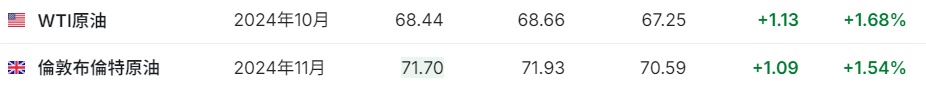3. 截至发稿,WTI原油涨1.68%,报68.44美元/桶。布伦特原油涨1.54%,报71.70美元/桶。