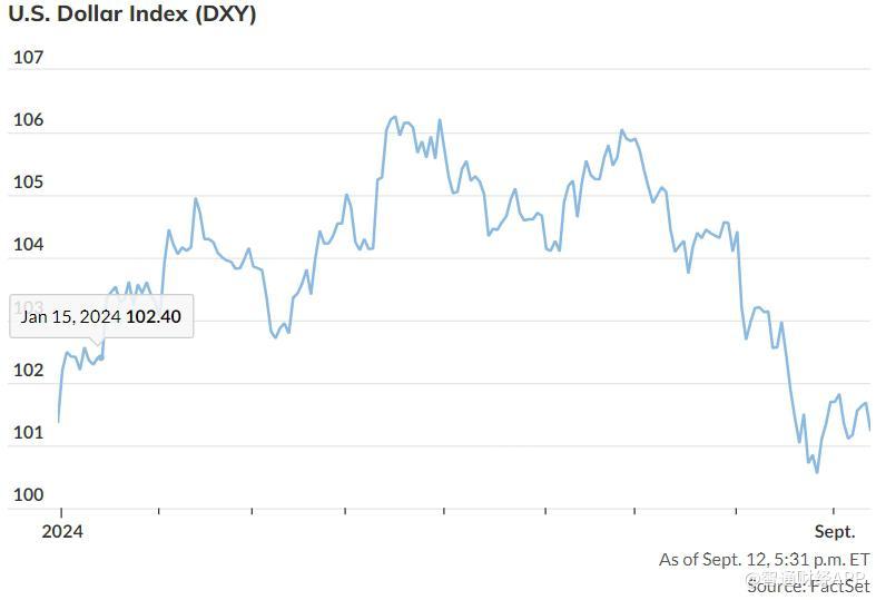 交易员们纷纷涌入美国国债市场,推动10年期国债收益率本周早些时候跌至一年多来的最低水平。同时,黄金价格飙升至历史新高。然而,美元在过去几个月逐渐失去了一些光彩——随着美联储在通胀缓解的背景下采取了比其他主要央行更谨慎的降息策略,美元走弱。