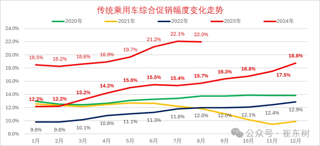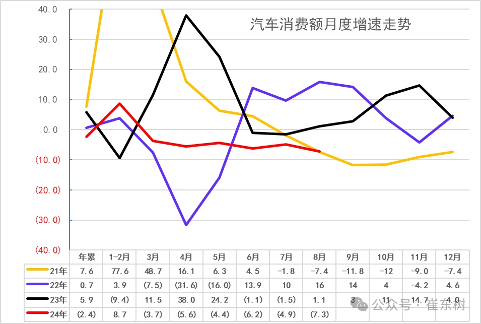 2023年的开局较弱, 因此2024年1-2月的汽车消费实现正增长,随后就是持续5%左右的负增长,其中价格因素起了重要影响。