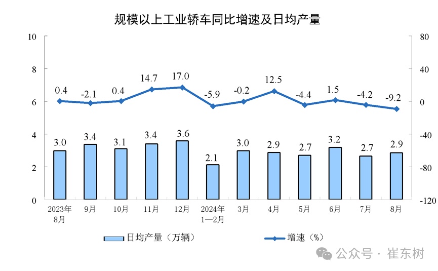 2024年8月份日均轿车生产2.9万台,同比下降9.2%。由于新能源轿车的去年基数不高,今年轿车生产波动较大。今年8月生产偏低是燃油车需求和生产波动的结果。