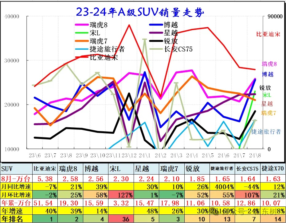 主流SUV市场格局迅速变化,比亚迪和奇瑞的SUV 表现超强,实现了自主SUV的国内外全面突破。