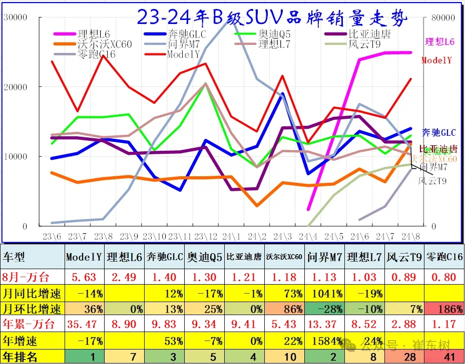 高端SUV市场的自主新能源迅速崛起,传统燃油车的高端优势弱化,近期的宝马等高端暂时放缓。