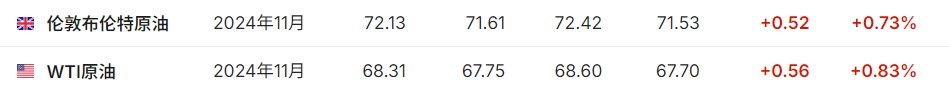 3. 截至发稿,WTI原油涨0.83%,报68.31美元/桶。布伦特原油涨0.73%,报72.13美元/桶。