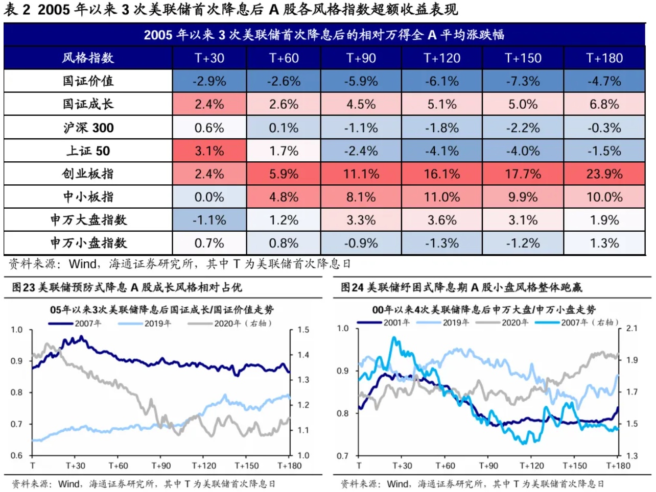 前文分析了美联储降息对A股的可能影响路径,并指出本次美联储预防式降息或在短期内改善A股流动性,中长期的影响还需观察基本面修复情况。进一步地,美联储不同类型降息对于A股风格是否有影响,降息背景下后续A股风格/行业或如何演绎?