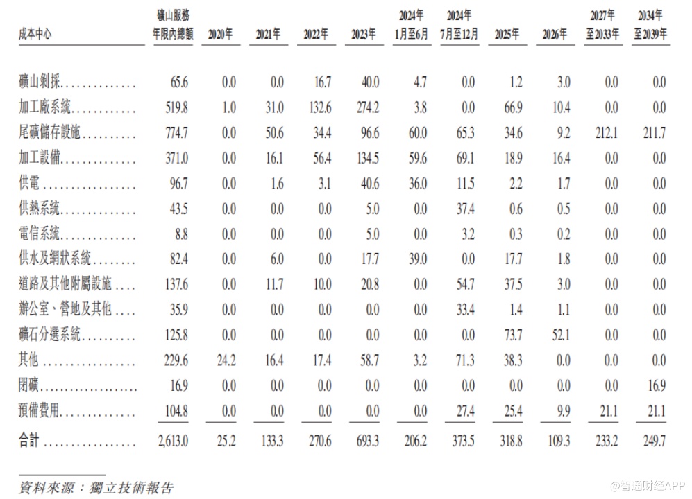 招股书显示,佳鑫国际自2020年起就巴库塔钨矿项目产生资本成本,自2020年至2024年6月期间所产生的资本成本总额为13.29亿元(人民币,下同)。巴库塔钨矿项目初步开发、随后尾矿坝的提升及矿场关闭所产生及预计资本成本总额预计为26.13亿元,而整个矿山服务年限的资本单位成本估计为36元/吨矿石及1.46万元/吨精矿。