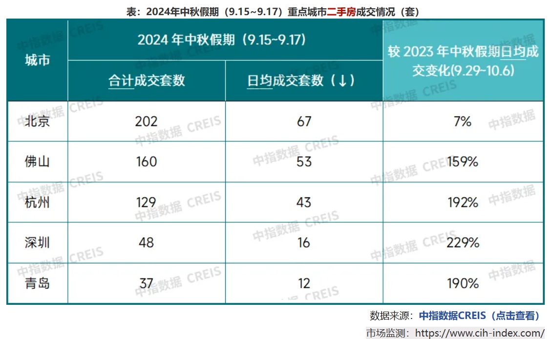 二手房方面,中秋假期期间,重点城市二手房成交套数较去年中秋假期普遍增长。其中北京、深圳、杭州、佛山在以价换量下,二手房市场活跃度尚在,尤其是一些“老破小”房源,价格降至心理预期后,刚需客户逐渐入市。