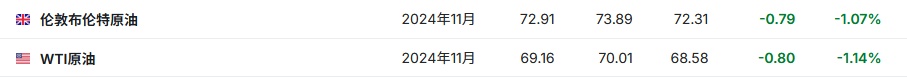 3. 截至发稿,WTI原油跌1.14%,报69.16美元/桶。布伦特原油跌1.07%,报72.91美元/桶。