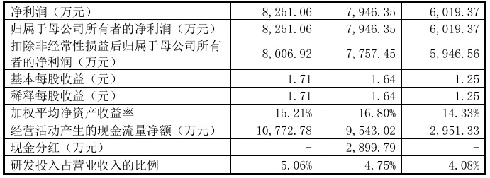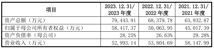 财务方面,于2021年度、2022年度及2023年度,公司实现营业收入分别约为5.81亿元、5.38亿元、5.3亿元。公司净利润分别约为6019万元、7946万元、8251万元人民币。