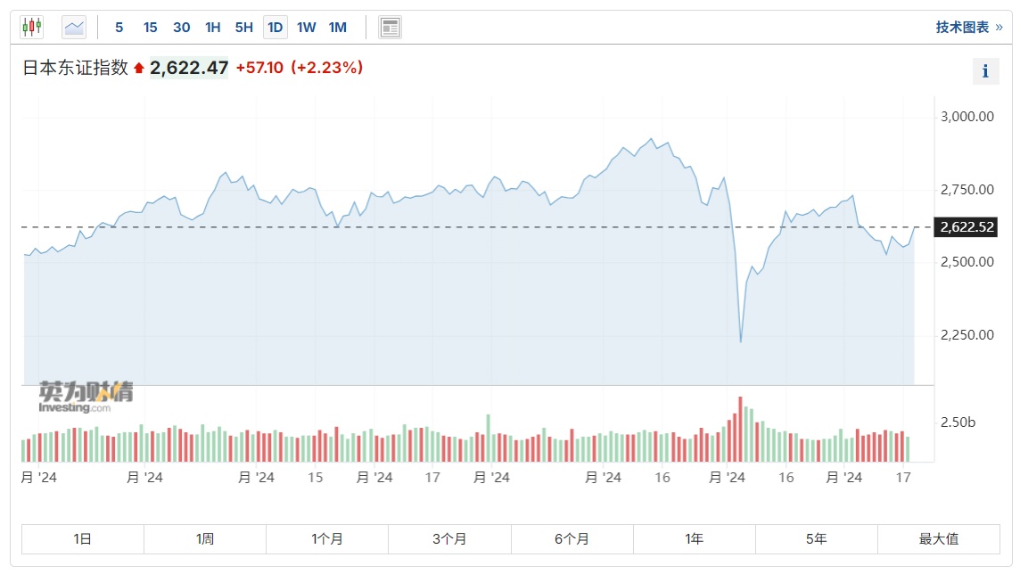 智通财经APP获悉,在美联储宣布降息50个基点后,周四日本股市上涨,不过,由于美联储主席鲍威尔随后警告称,不要假设大幅度降息将继续下去,日元走弱。目前,投资者正在等待日本央行周五的利率决定。
