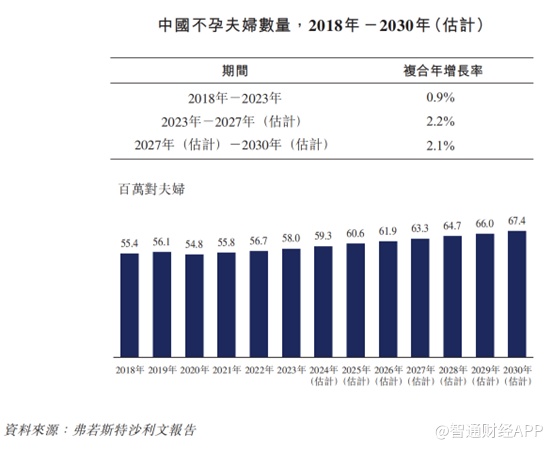 随着不孕夫妇的患病率的提升,中国不孕夫妇的数量由2018年的5540万对增至2023年的5800万对,沙利文预计于2030年将增至6740万对。