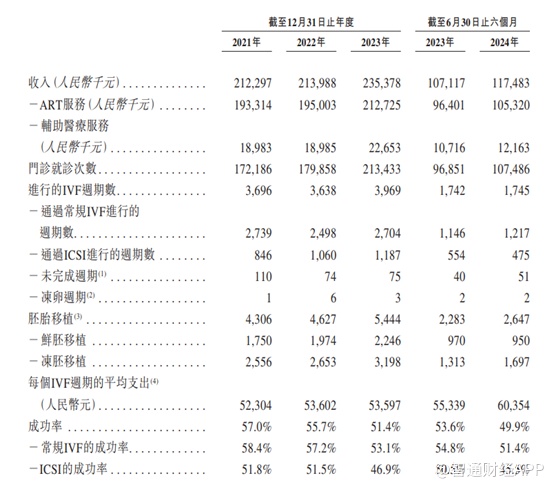 招股书显示,在过去的2021年、2022年及2023年,爱维艾夫的营业收入分别为4.20亿元、4.07亿元及4.94亿元;期间对应的净利润分别为9456.2万元、6451.7万元及6474.9万元。对于2022年营收下降,爱维艾夫在招股书中表示,由于2021年6月底停止经营深圳妇科医院,2021年自其获得收入920万元,而2022年并未有该部分收益;另外受COVID-19疫情影响患者就诊情况,尤其是天津爱维医院及昆明爱维艾夫医院。而2023年收入增加则主要由于湛江久和医院及天津爱维医院的IVF周期数增加,此乃由于2023年防疫措施调整及天津爱维医院搬至交通网络更为便利及面积更大的新院区。