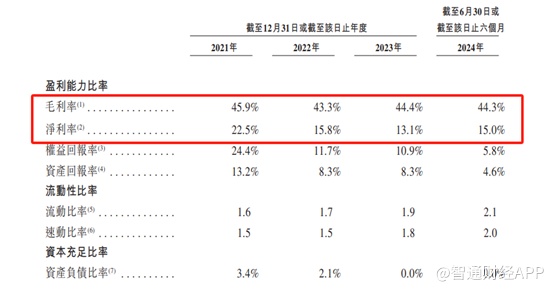 然而爱维艾夫的毛利率及净利率却在下降。公司销售毛利率由2021年的45.9%下降至2024年上半年的44.3%;净利率更是由2021年的22.5%下降至2024年上半年的15%。