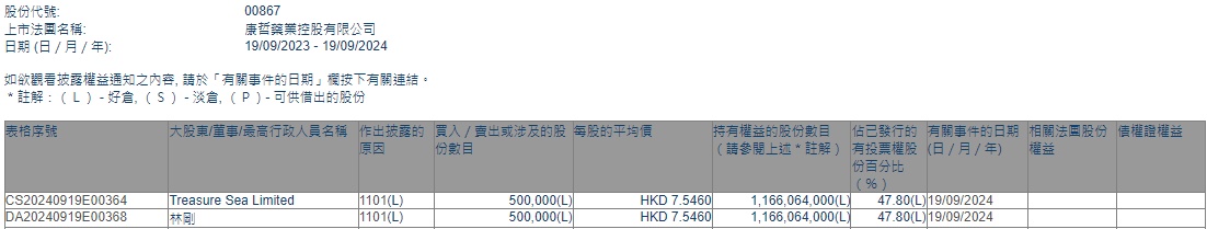 Limited增持康哲药业(00867)50万股,每股作价7.546港元,总金额为377.3万港元。增持后最新持股数目约为11.66亿股,最新持股比例为47.80%。