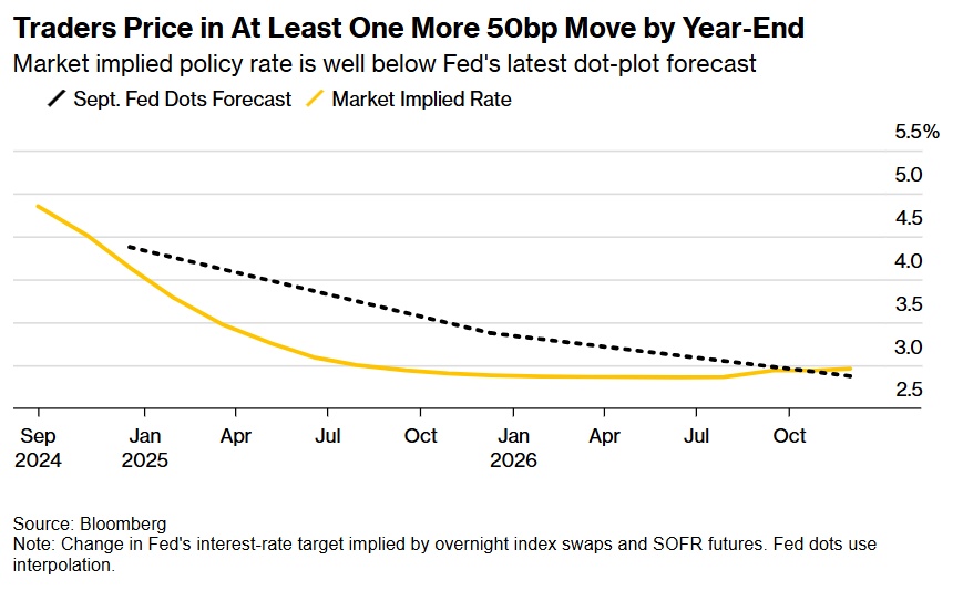在市场上,交易员预计到今年年底将降息约70个基点,到明年9月将降息近200个基点。这比美联储官员在最新的点阵图中预测的年底前再降息50个基点更为激进。