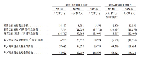更需要注意的是,健康之路的经营现金流也呈现下降趋势。2021年至2024年上半年,健康之路的经营现金流净额分别为1415.7万元、878.1万元、359.1万元及1303.0万元。 报告期各期末,公司现金及现金等价物分别为4402.2万元、6971.9万元、1.69亿元及1.50亿元。此外,公司负债居高不下。2021年至2024年上半年,其负债净额分别为约11.99亿元、14.41亿元、16.52亿元和17.09亿元。