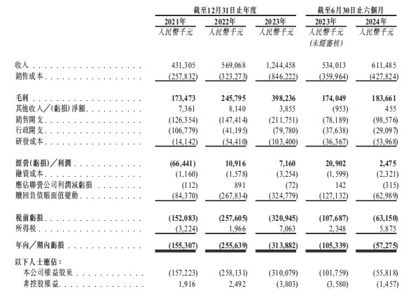 在招股书中,公司如实披露亏损原因,主要由于赎回负债的账面值变动所致。2021年至2024年上半年,公司赎回负债账面值变动产生的亏损分别为8437万元、2.68亿元、3.25亿元6298.9万元。