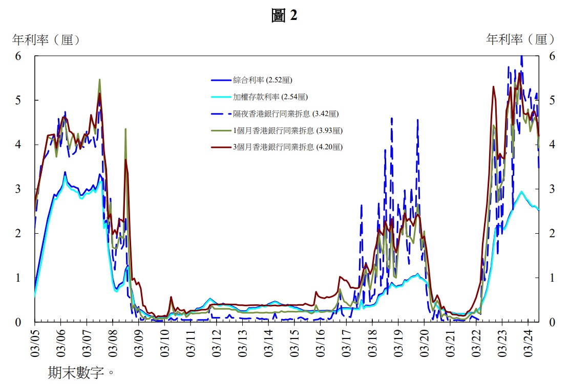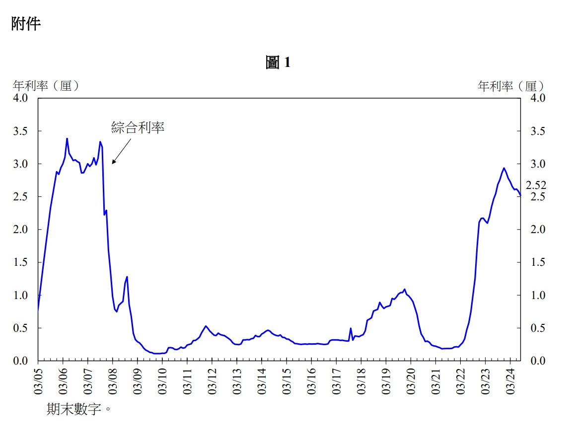 智通财经APP获悉,9月20日,香港金融管理局公布2024年8月底的综合利率。反映银行平均资金成本的综合利率在2024年8月底为2.52厘,较2024年7月底的2.58厘下跌6基点。综合利率下跌,主要反映月内存款及银行同业资金的加权资金成本减少。