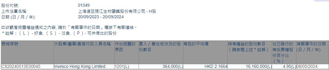 Limited减持复旦张江(01349)36.4万股,每股作价2.1664港元,总金额约为78.86万港元。减持后最新持股数目为1616万股,最新持股比例为4.95%。