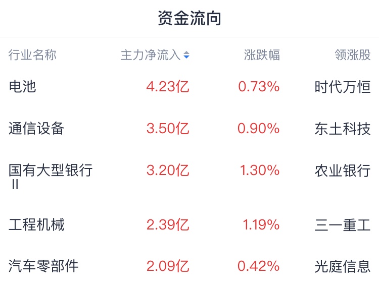 主力资金方面,资金青睐电池、通信设备等行业;资金出逃半导体、软件开发等行业。
