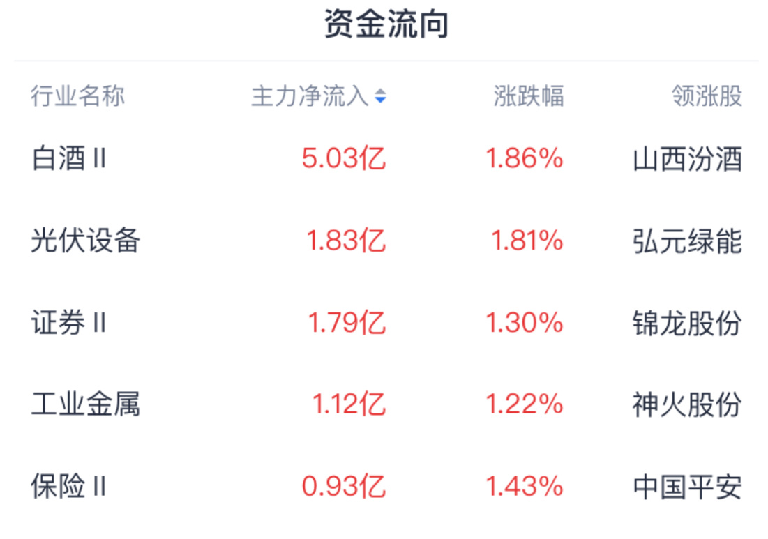 主力资金方面,资金青睐白酒、证券、光伏设备等行业;资金出逃电网设备、软件开发等行业。