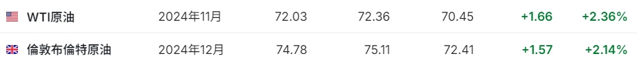 3. 截至发稿,WTI原油涨2.36%,报72.03美元/桶。布伦特原油涨2.148%,报74.78美元/桶。