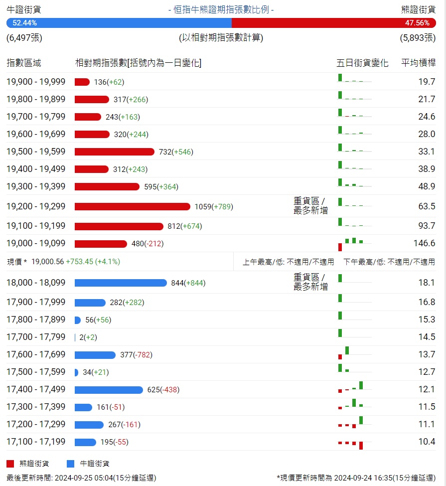 智通财经APP获悉,截至9月25日,恒指最新的牛熊街货比例为52:48。