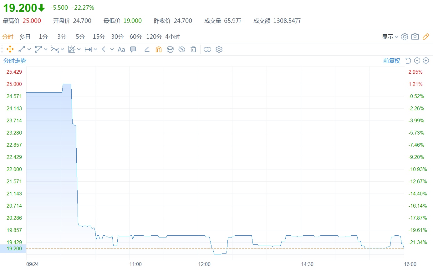 “一日跌回解放前”,在港股市场上并不是什么新鲜事。这一幕,今日(9月24日)便显眼地在国鸿氢能(09663)身上上演了。
