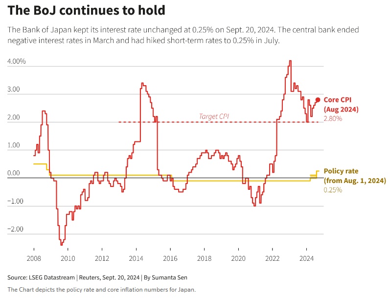 由于原材料成本上涨和就业市场吃紧推高了通胀和工资水平,日本央行在3月份退出了该政策,并在行长植田和男的领导下于7月份将利率上调至0.25%。