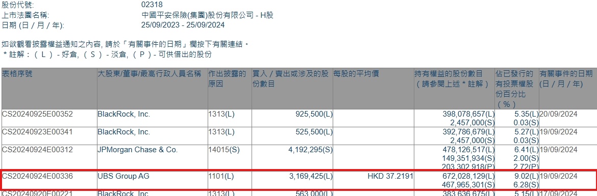 智通财经APP获悉,香港联交所最新资料显示,9月19日,瑞银增持中国平安(02318)316.9425万股,每股作价37.2191港元,总金额约为1.18亿港元。增持后最新持股数目约为6.72亿股,最新持股比例为9.02%。