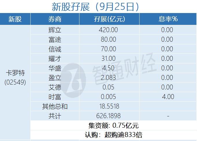新股孖展统计 | 9月25日