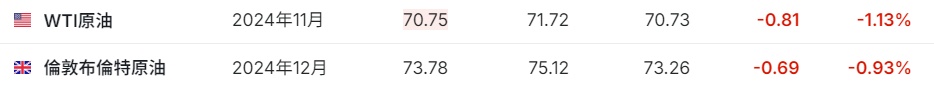 3. 截至发稿,WTI原油跌1.13%,报70.75美元/桶。布伦特原油跌0.93%,报73.78美元/桶。